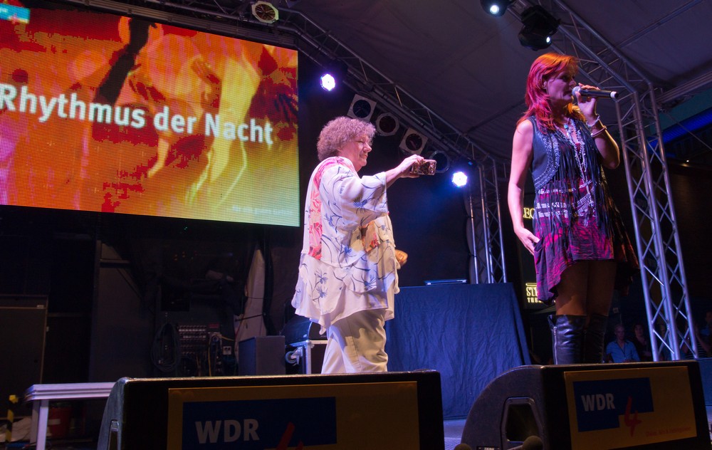 7000 Menschen waren zur Jubiläumsparty von Rhyr´tmus der Nacht nach Essen gekommen und feierten auf dem Kennedyplatz bei heißem sommerwetter eine tolle Party mit den 25 Künstlern. Zum Schluß kam der Überraschungsgast Andrea Berg.