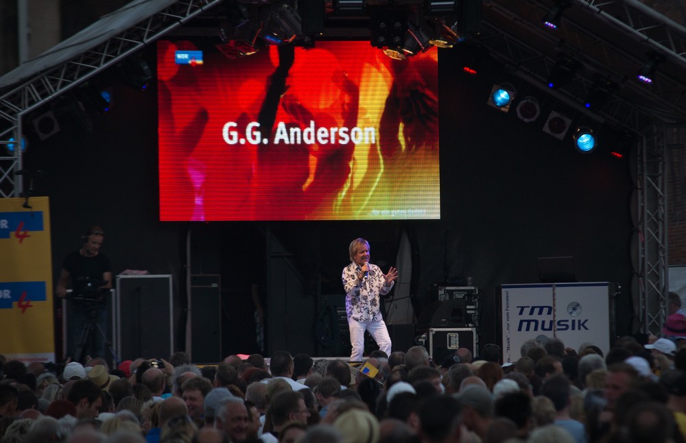 7000 Menschen waren zur Jubiläumsparty von Rhyr´tmus der Nacht nach Essen gekommen und feierten auf dem Kennedyplatz bei heißem sommerwetter eine tolle Party mit den 25 Künstlern. Zum Schluß kam der Überraschungsgast Andrea Berg.