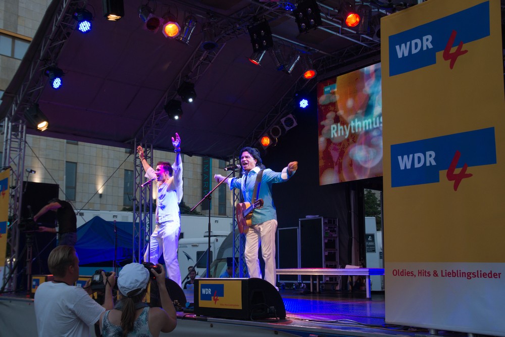 7000 Menschen waren zur Jubiläumsparty von Rhyr´tmus der Nacht nach Essen gekommen und feierten auf dem Kennedyplatz bei heißem sommerwetter eine tolle Party mit den 25 Künstlern. Zum Schluß kam der Überraschungsgast Andrea Berg.