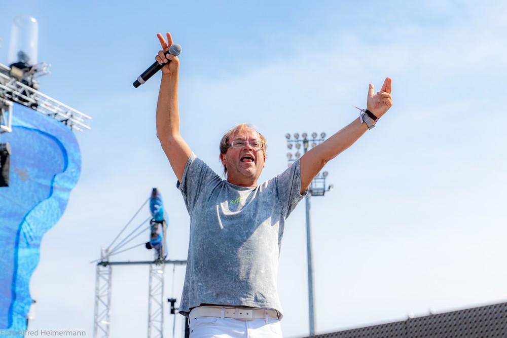 13._Heimspiel_Andrea_Berg__Freitag(1) Mechatronikarena Aspach, 20.7.2018 15000 Besucher waren zum 1. Konzert des 13. Andrea Berg Heimspiel in die Arena in der Fautenau gekommen. Durch die Hitze waren im Vorprogramm nicht soviele Fans wie sonst an der Bühne. Rebel Tell und Sunrise waren Künstler, die im Vorprogramm für die meiste Stimmung sorgten, aber es traten noch andere Künstler auf, u.a. eine Sängerin aus Kleinaspach. Gegen 21 Uhr dann der große Moment, als der Schmetterlingvorhang fiel und Andrea ihr 3 stündiges Konzert begann, sie strahlte mit einem lächeln den ganzen Abend, man merkte, sie freute sich, so wie auch ihre Fans. Mit einem großen Feuerwerk endete ein schöner Sommerabend. |