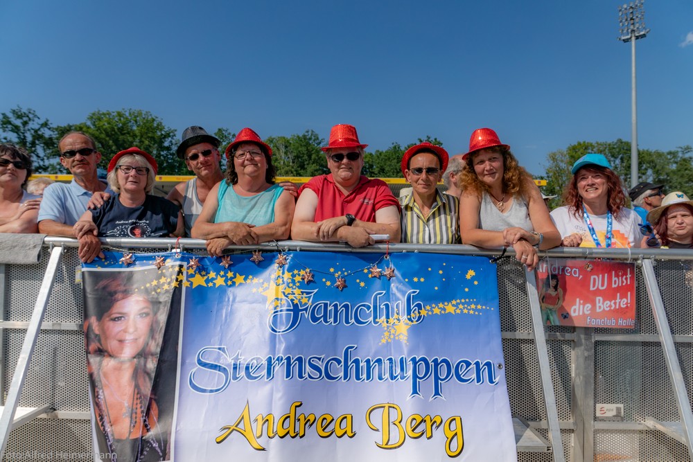 13._Heimspiel_Andrea_Berg__Freitag(1) Mechatronikarena Aspach, 20.7.2018 15000 Besucher waren zum 1. Konzert des 13. Andrea Berg Heimspiel in die Arena in der Fautenau gekommen. Durch die Hitze waren im Vorprogramm nicht soviele Fans wie sonst an der Bühne. Rebel Tell und Sunrise waren Künstler, die im Vorprogramm für die meiste Stimmung sorgten, aber es traten noch andere Künstler auf, u.a. eine Sängerin aus Kleinaspach. Gegen 21 Uhr dann der große Moment, als der Schmetterlingvorhang fiel und Andrea ihr 3 stündiges Konzert begann, sie strahlte mit einem lächeln den ganzen Abend, man merkte, sie freute sich, so wie auch ihre Fans. Mit einem großen Feuerwerk endete ein schöner Sommerabend. |