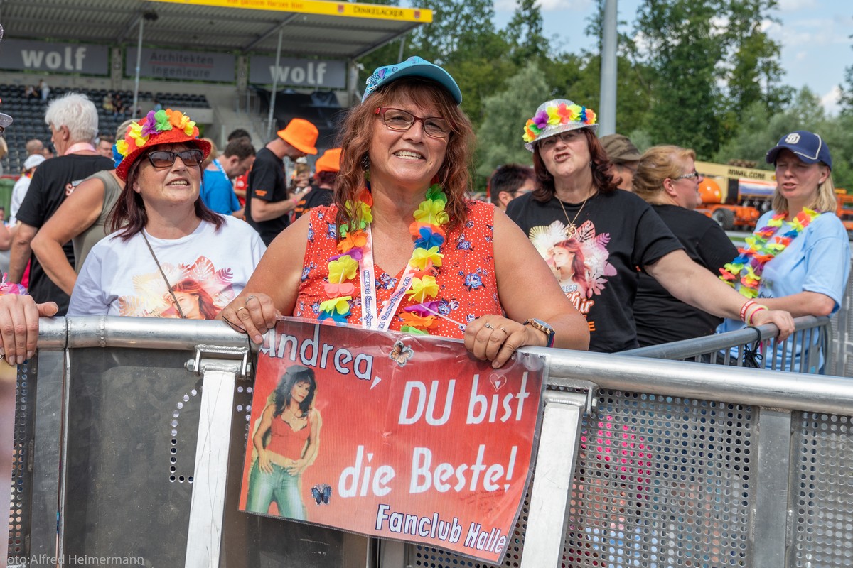 Volles Stadion und großartige Stimmung von 16-24 Uhr beim Heimspiel am Samstag. Maite Kelly war wieder gesund und konnte ein paar Lieder singen und natürlich auch ein Duett mit Andrea. Andrea war bgerührt, sie liebt halt ihren Beruf und freut sich, wenn ihre Fans sich an ihrer Musik erfreuen.