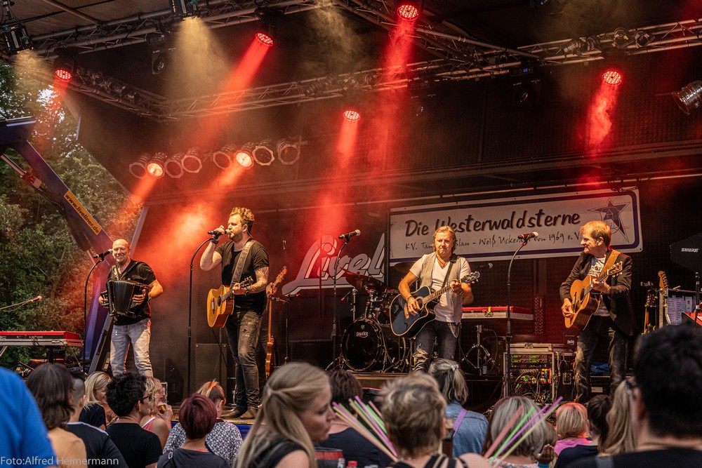 14. Kult-Openair Westerwaldsterne Uckerath 2019 Hotel Landsknecht Nur ein paar Regentropfen kamen vom Himmel, als die Paveier um 21 Uhr die Bühne auf dem Openairplatz vom Hotel Landsknecht betraten. Vorher brachte die Coverband "Fünfgestalten" das Publikum mit BAP Songs in Stimmung. Beim Auftritt der Paveier sang der ganze Platz kräftig deren Lieder mit. Viele Zugaben musste die Band geben, bevor sie gegen 23 Uhr die Bühne verliesen. Schade, dass der Instrumentenverteiler der Band mich anschnautze, weil ich auf der Bühne im Hintergrund Fotos machte, wie bei allen vergangenen Openairs. Noch keine Gruppe hat sich so verhalten, ein Zeichen von Arroganz! Schade, hatte ich nicht von der Band erwartet. |