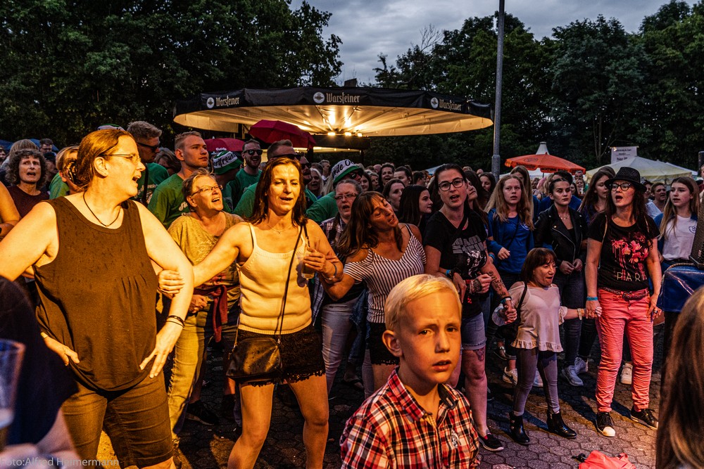 14. Kult-Openair Westerwaldsterne Uckerath 2019 Hotel Landsknecht Nur ein paar Regentropfen kamen vom Himmel, als die Paveier um 21 Uhr die Bühne auf dem Openairplatz vom Hotel Landsknecht betraten. Vorher brachte die Coverband "Fünfgestalten" das Publikum mit BAP Songs in Stimmung. Beim Auftritt der Paveier sang der ganze Platz kräftig deren Lieder mit. Viele Zugaben musste die Band geben, bevor sie gegen 23 Uhr die Bühne verliesen. Schade, dass der Instrumentenverteiler der Band mich anschnautze, weil ich auf der Bühne im Hintergrund Fotos machte, wie bei allen vergangenen Openairs. Noch keine Gruppe hat sich so verhalten, ein Zeichen von Arroganz! Schade, hatte ich nicht von der Band erwartet. |
