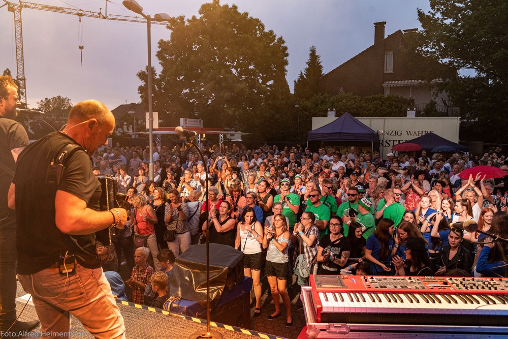 14. Kult-Openair Westerwaldsterne Uckerath 2019 Hotel Landsknecht Nur ein paar Regentropfen kamen vom Himmel, als die Paveier um 21 Uhr die Bühne auf dem Openairplatz vom Hotel Landsknecht betraten. Vorher brachte die Coverband "Fünfgestalten" das Publikum mit BAP Songs in Stimmung. Beim Auftritt der Paveier sang der ganze Platz kräftig deren Lieder mit. Viele Zugaben musste die Band geben, bevor sie gegen 23 Uhr die Bühne verliesen. Schade, dass der Instrumentenverteiler der Band mich anschnautze, weil ich auf der Bühne im Hintergrund Fotos machte, wie bei allen vergangenen Openairs. Noch keine Gruppe hat sich so verhalten, ein Zeichen von Arroganz! Schade, hatte ich nicht von der Band erwartet. |