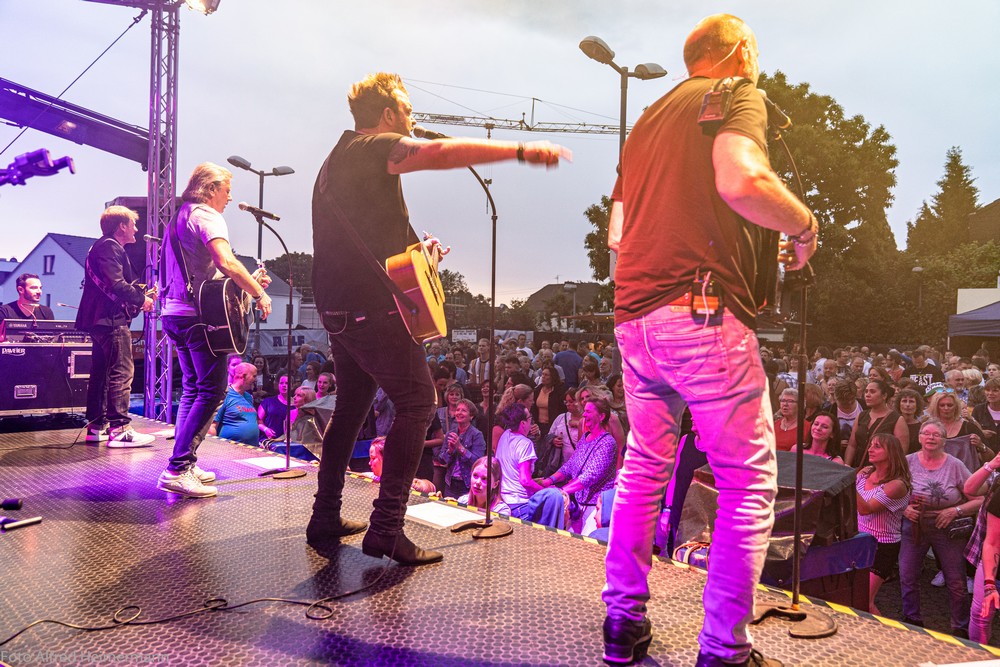 14. Kult-Openair Westerwaldsterne Uckerath 2019 Hotel Landsknecht Nur ein paar Regentropfen kamen vom Himmel, als die Paveier um 21 Uhr die Bühne auf dem Openairplatz vom Hotel Landsknecht betraten. Vorher brachte die Coverband "Fünfgestalten" das Publikum mit BAP Songs in Stimmung. Beim Auftritt der Paveier sang der ganze Platz kräftig deren Lieder mit. Viele Zugaben musste die Band geben, bevor sie gegen 23 Uhr die Bühne verliesen. Schade, dass der Instrumentenverteiler der Band mich anschnautze, weil ich auf der Bühne im Hintergrund Fotos machte, wie bei allen vergangenen Openairs. Noch keine Gruppe hat sich so verhalten, ein Zeichen von Arroganz! Schade, hatte ich nicht von der Band erwartet. |