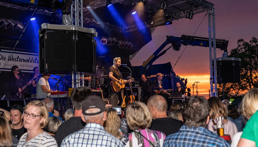 14. Kult-Openair Westerwaldsterne Uckerath 2019 Hotel Landsknecht Nur ein paar Regentropfen kamen vom Himmel, als die Paveier um 21 Uhr die Bühne auf dem Openairplatz vom Hotel Landsknecht betraten. Vorher brachte die Coverband "Fünfgestalten" das Publikum mit BAP Songs in Stimmung. Beim Auftritt der Paveier sang der ganze Platz kräftig deren Lieder mit. Viele Zugaben musste die Band geben, bevor sie gegen 23 Uhr die Bühne verliesen. Schade, dass der Instrumentenverteiler der Band mich anschnautze, weil ich auf der Bühne im Hintergrund Fotos machte, wie bei allen vergangenen Openairs. Noch keine Gruppe hat sich so verhalten, ein Zeichen von Arroganz! Schade, hatte ich nicht von der Band erwartet. |