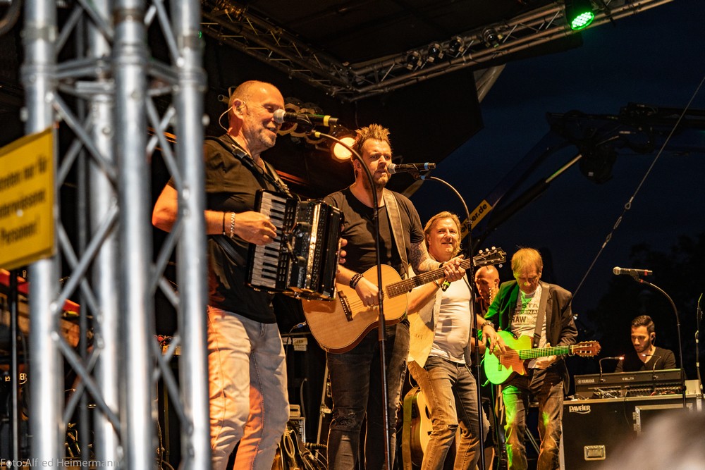 14. Kult-Openair Westerwaldsterne Uckerath 2019 Hotel Landsknecht Nur ein paar Regentropfen kamen vom Himmel, als die Paveier um 21 Uhr die Bühne auf dem Openairplatz vom Hotel Landsknecht betraten. Vorher brachte die Coverband "Fünfgestalten" das Publikum mit BAP Songs in Stimmung. Beim Auftritt der Paveier sang der ganze Platz kräftig deren Lieder mit. Viele Zugaben musste die Band geben, bevor sie gegen 23 Uhr die Bühne verliesen. Schade, dass der Instrumentenverteiler der Band mich anschnautze, weil ich auf der Bühne im Hintergrund Fotos machte, wie bei allen vergangenen Openairs. Noch keine Gruppe hat sich so verhalten, ein Zeichen von Arroganz! Schade, hatte ich nicht von der Band erwartet. |