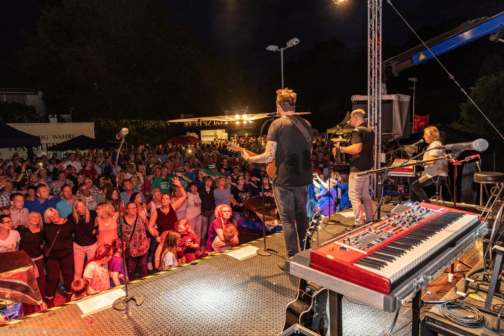 14. Kult-Openair Westerwaldsterne Uckerath 2019 Hotel Landsknecht Nur ein paar Regentropfen kamen vom Himmel, als die Paveier um 21 Uhr die Bühne auf dem Openairplatz vom Hotel Landsknecht betraten. Vorher brachte die Coverband "Fünfgestalten" das Publikum mit BAP Songs in Stimmung. Beim Auftritt der Paveier sang der ganze Platz kräftig deren Lieder mit. Viele Zugaben musste die Band geben, bevor sie gegen 23 Uhr die Bühne verliesen. Schade, dass der Instrumentenverteiler der Band mich anschnautze, weil ich auf der Bühne im Hintergrund Fotos machte, wie bei allen vergangenen Openairs. Noch keine Gruppe hat sich so verhalten, ein Zeichen von Arroganz! Schade, hatte ich nicht von der Band erwartet. |