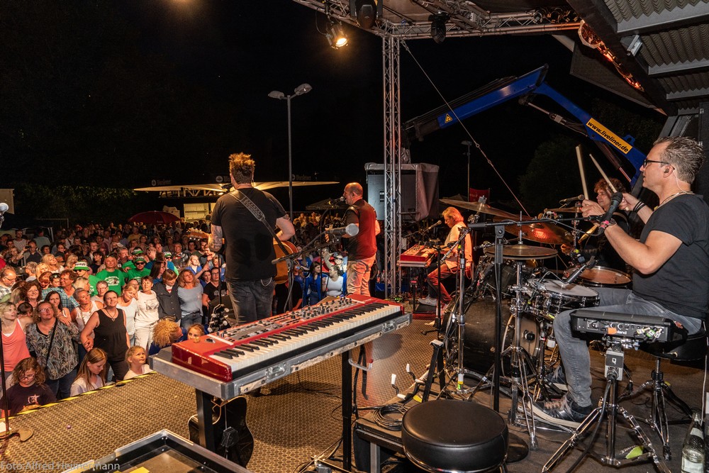 14. Kult-Openair Westerwaldsterne Uckerath 2019 Hotel Landsknecht Nur ein paar Regentropfen kamen vom Himmel, als die Paveier um 21 Uhr die Bühne auf dem Openairplatz vom Hotel Landsknecht betraten. Vorher brachte die Coverband "Fünfgestalten" das Publikum mit BAP Songs in Stimmung. Beim Auftritt der Paveier sang der ganze Platz kräftig deren Lieder mit. Viele Zugaben musste die Band geben, bevor sie gegen 23 Uhr die Bühne verliesen. Schade, dass der Instrumentenverteiler der Band mich anschnautze, weil ich auf der Bühne im Hintergrund Fotos machte, wie bei allen vergangenen Openairs. Noch keine Gruppe hat sich so verhalten, ein Zeichen von Arroganz! Schade, hatte ich nicht von der Band erwartet. |