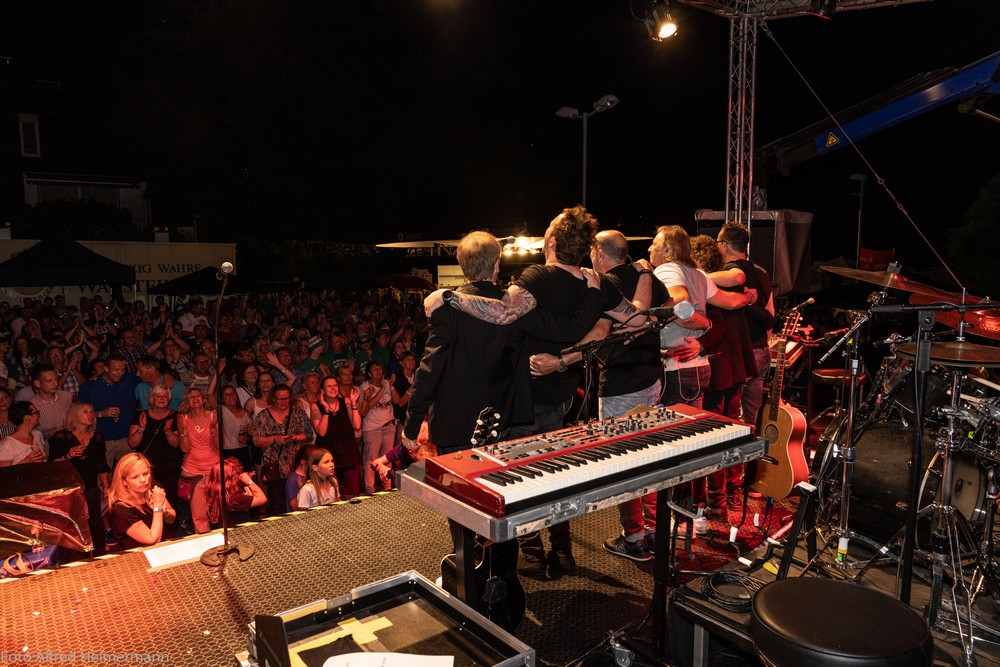 14. Kult-Openair Westerwaldsterne Uckerath 2019 Hotel Landsknecht Nur ein paar Regentropfen kamen vom Himmel, als die Paveier um 21 Uhr die Bühne auf dem Openairplatz vom Hotel Landsknecht betraten. Vorher brachte die Coverband "Fünfgestalten" das Publikum mit BAP Songs in Stimmung. Beim Auftritt der Paveier sang der ganze Platz kräftig deren Lieder mit. Viele Zugaben musste die Band geben, bevor sie gegen 23 Uhr die Bühne verliesen. Schade, dass der Instrumentenverteiler der Band mich anschnautze, weil ich auf der Bühne im Hintergrund Fotos machte, wie bei allen vergangenen Openairs. Noch keine Gruppe hat sich so verhalten, ein Zeichen von Arroganz! Schade, hatte ich nicht von der Band erwartet. |