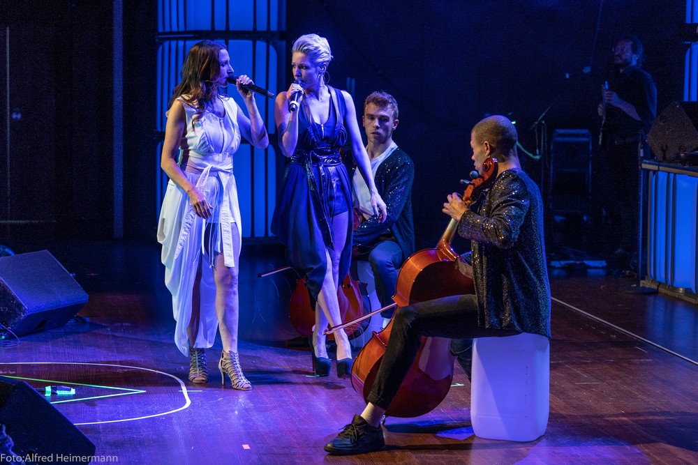 30 Jahre Leidenschaft Alexandra & Anita Hofmann Konzert Reutlingen In der wunderschönen Stadthalle von Reutlingen feierten ca. 2000 Musikbegeisterte Alexandra & Anita Hofmann deren 30. Bühnenjubiläum. Band Tänzer und Tänzerinnen zeigten ein Feuerwerk von Musik, Gesang und Tanz, es war ein erlebnis. Toll wenn man sieht, wie die Hofmanns freundschaftlich mit ihren Fans umgehen. |