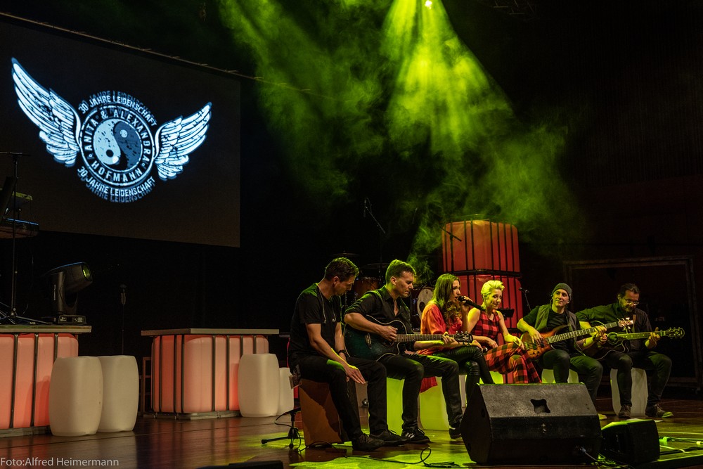30 Jahre Leidenschaft Alexandra & Anita Hofmann Konzert Reutlingen In der wunderschönen Stadthalle von Reutlingen feierten ca. 2000 Musikbegeisterte Alexandra & Anita Hofmann deren 30. Bühnenjubiläum. Band Tänzer und Tänzerinnen zeigten ein Feuerwerk von Musik, Gesang und Tanz, es war ein erlebnis. Toll wenn man sieht, wie die Hofmanns freundschaftlich mit ihren Fans umgehen. |