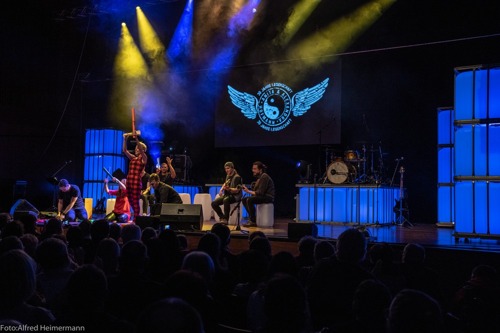 30 Jahre Leidenschaft Alexandra & Anita Hofmann Konzert Reutlingen In der wunderschönen Stadthalle von Reutlingen feierten ca. 2000 Musikbegeisterte Alexandra & Anita Hofmann deren 30. Bühnenjubiläum. Band Tänzer und Tänzerinnen zeigten ein Feuerwerk von Musik, Gesang und Tanz, es war ein erlebnis. Toll wenn man sieht, wie die Hofmanns freundschaftlich mit ihren Fans umgehen. |