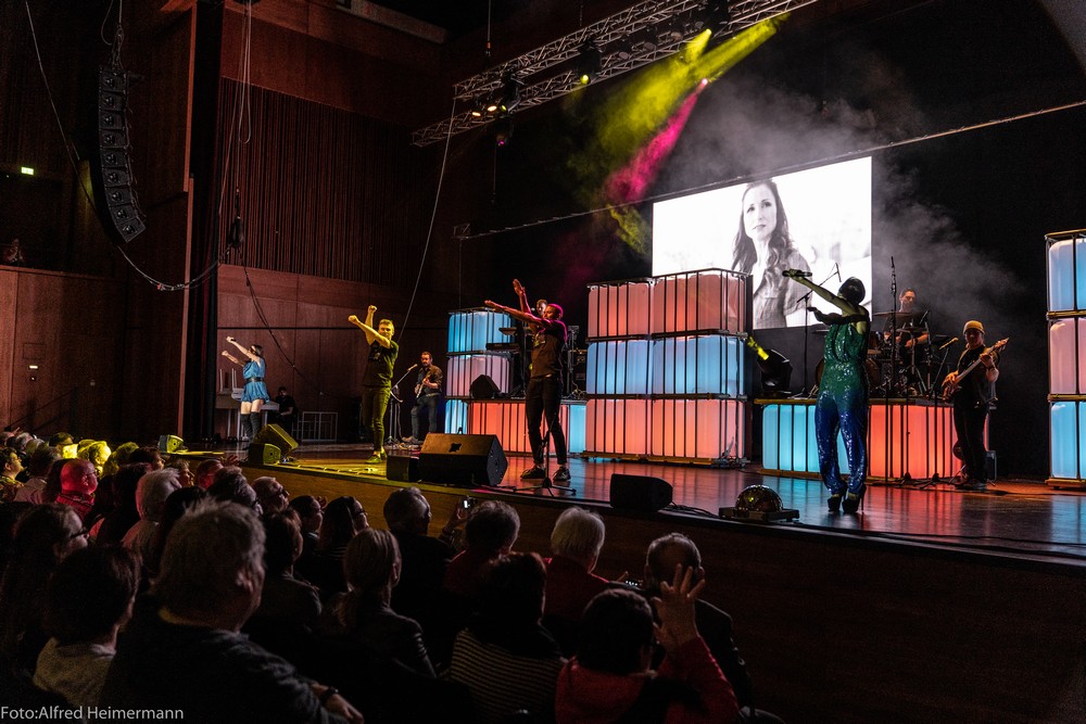 30 Jahre Leidenschaft Alexandra & Anita Hofmann Konzert Reutlingen In der wunderschönen Stadthalle von Reutlingen feierten ca. 2000 Musikbegeisterte Alexandra & Anita Hofmann deren 30. Bühnenjubiläum. Band Tänzer und Tänzerinnen zeigten ein Feuerwerk von Musik, Gesang und Tanz, es war ein erlebnis. Toll wenn man sieht, wie die Hofmanns freundschaftlich mit ihren Fans umgehen. |