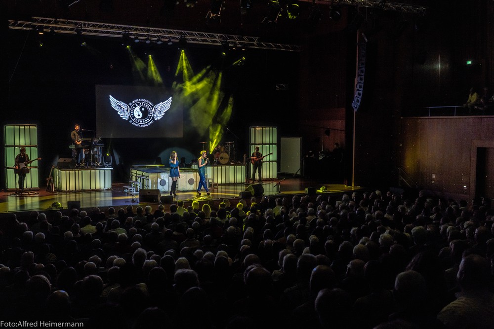30 Jahre Leidenschaft Alexandra & Anita Hofmann Konzert Reutlingen In der wunderschönen Stadthalle von Reutlingen feierten ca. 2000 Musikbegeisterte Alexandra & Anita Hofmann deren 30. Bühnenjubiläum. Band Tänzer und Tänzerinnen zeigten ein Feuerwerk von Musik, Gesang und Tanz, es war ein erlebnis. Toll wenn man sieht, wie die Hofmanns freundschaftlich mit ihren Fans umgehen. |