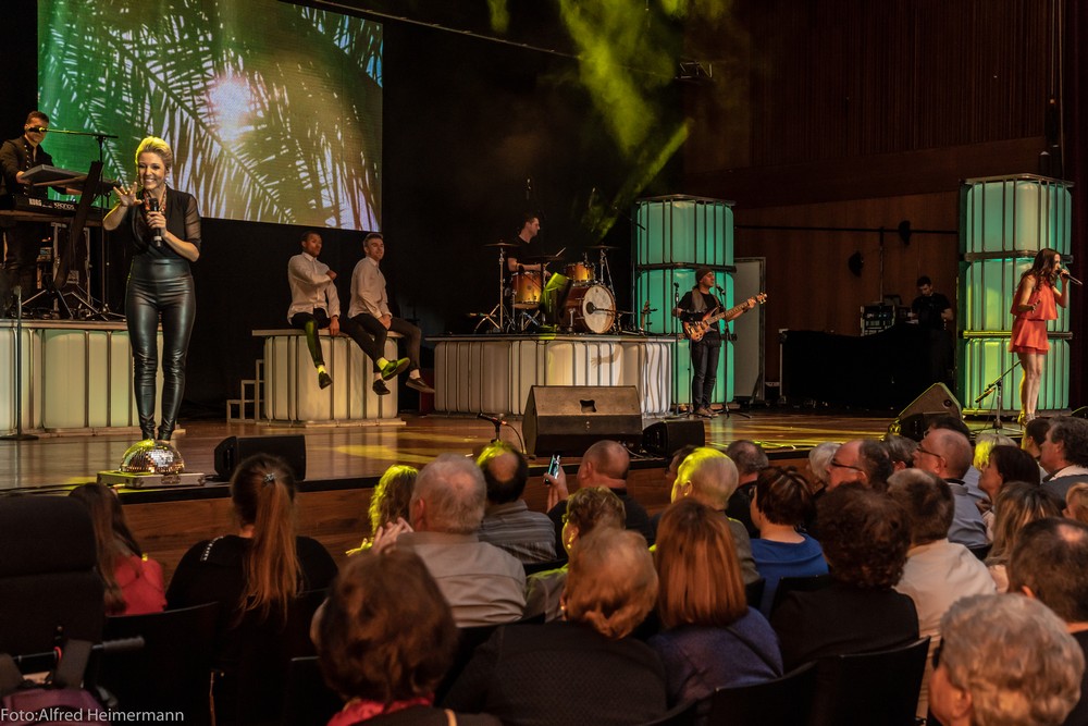 30 Jahre Leidenschaft Alexandra & Anita Hofmann Konzert Reutlingen In der wunderschönen Stadthalle von Reutlingen feierten ca. 2000 Musikbegeisterte Alexandra & Anita Hofmann deren 30. Bühnenjubiläum. Band Tänzer und Tänzerinnen zeigten ein Feuerwerk von Musik, Gesang und Tanz, es war ein erlebnis. Toll wenn man sieht, wie die Hofmanns freundschaftlich mit ihren Fans umgehen. |