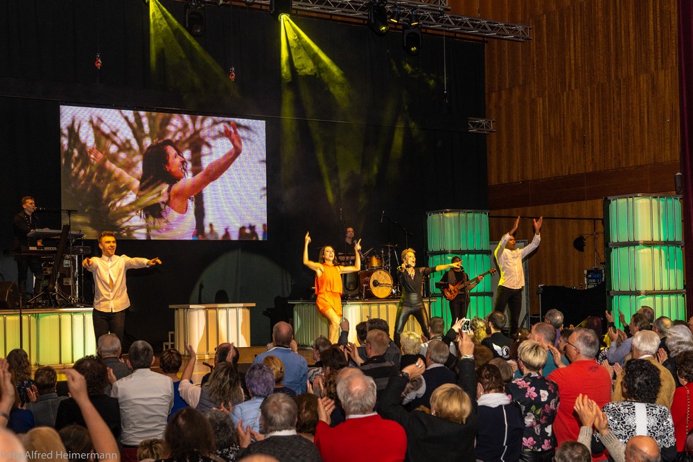 30 Jahre Leidenschaft Alexandra & Anita Hofmann Konzert Reutlingen In der wunderschönen Stadthalle von Reutlingen feierten ca. 2000 Musikbegeisterte Alexandra & Anita Hofmann deren 30. Bühnenjubiläum. Band Tänzer und Tänzerinnen zeigten ein Feuerwerk von Musik, Gesang und Tanz, es war ein erlebnis. Toll wenn man sieht, wie die Hofmanns freundschaftlich mit ihren Fans umgehen. |