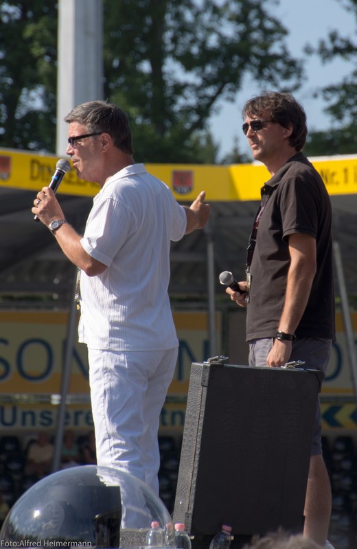 Schon seit lange war die Arena wieder mit über 15000 Besuchern ausverkauft. Insgesamt kamen so zu beiden Events 25000 Besucher, ein Fan reiste sogar aus Australien an. Farbenfroh war die Show und der Titelsong zur kommenden ATLANTIS Tour wird sicher ein Hit, geschrieben hat ihn DJ Bobo. Heißes Sommerwetter herschte an allen Tagen der Events in der Arena und die Stimmung war bombig. Das 9. Heimspiel (Spiele)findet am 18. u. 19.7.2014 statt.