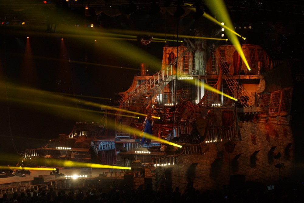 Abentuerertour Stuttgart Abentuerertour Stuttgart 12500 Besucher waren zur Premiere der Abentuertour zum 20. Bühnenjubiläum von Andrea Berg am 6.Januar 2012 in ie Martin Schleyerhalle gekommen und erlebten eine grandiose Bühnenshow auf dem riesigen Piratenschiff, was DJ Bobo entworfen hat, der auch die Regie der Show hatte. |