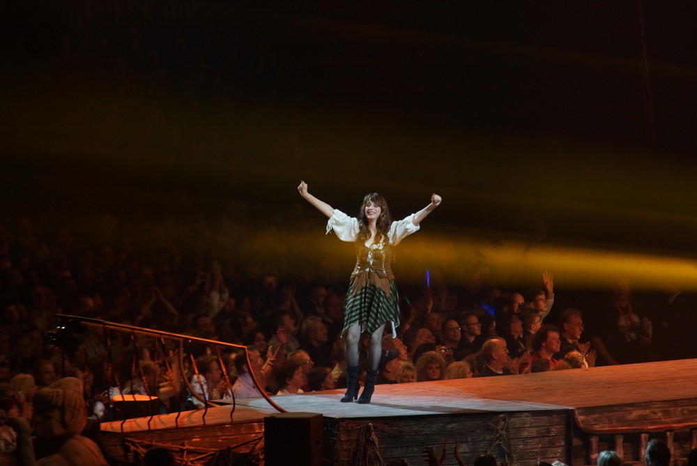 Abentuerertour Stuttgart Abentuerertour Stuttgart 12500 Besucher waren zur Premiere der Abentuertour zum 20. Bühnenjubiläum von Andrea Berg am 6.Januar 2012 in ie Martin Schleyerhalle gekommen und erlebten eine grandiose Bühnenshow auf dem riesigen Piratenschiff, was DJ Bobo entworfen hat, der auch die Regie der Show hatte. |