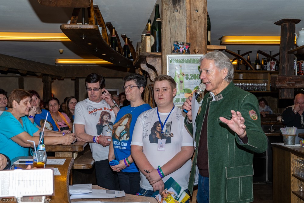 53 Fanclubs hatten ihre Leiter und seren Stellvertretter zum Fanclubleitertreffen geschickt und somit der Einladung von Andrea Berg und ihrem Team gefolgt. Samstags wurde mit Mona, Hansi, Tante Gerda und Onkel Pitti in der Tenne gefeiert, es spielte der Musik Express. Sonntags begrüßte dann Andrea ihre Fanclubleiter, die viele Infos für das Jahr 2019 von Uli und Andrea bekamen. Mit einem gemeinsamen Essen endete am Nachmittag das Treffen.