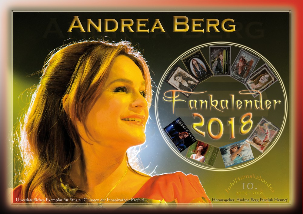 Seit nunmehr 10 Jahren unterstütze ich mit dem Andrea BergFanclub Hennef (den ich extra dafür gegründet habe) mit der jährlichen Spendenaktion der Fans zu Gunsten der Hospiz Stiftung Krefeld die tolle Arbeit der Stiftung. Jeder Spender bekommt als Dank den Fankalender für seine Spende. Wer an der Aktion teilnehmen möchte und somit auch einen Fankalender für 2018 besitzen möchte, kann eine Mail schicken und bekommt dann alle Infos gesendet. Mail an: abfchennef@heimermann.info