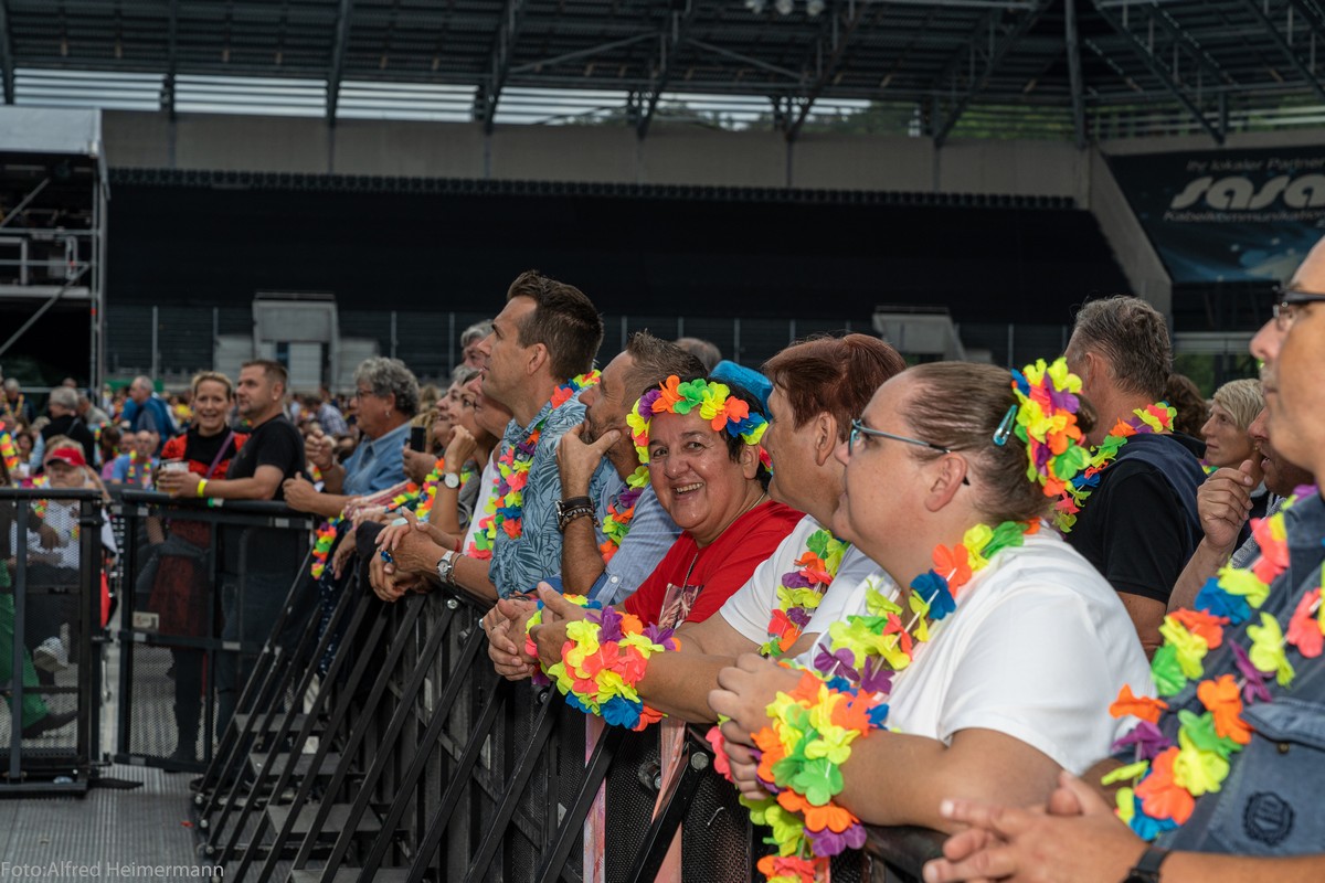 Rund 10000 Besucher waren in das Stadion in Schaffhausen gekommen und feierten Andrea Berg. Im Vorprogramm stimmten die Rebel Tell Band mit schweizer Schlagern die Eidgenossen auf den Abend ein. Andrea war beeindruckt über so viel Liebe ihrer Fans.