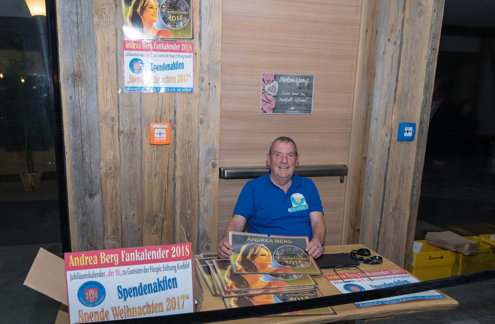 Gute Stimmung unter den Fans in der ausverkauften Hazienda, alle feierten 25 Jahre Andrea Berg mit der Schlagerkönigin. Unser FC Hennef sammelte wieder mit den Fankalendern2018 für die Hospiz Stiftung Krefeld undtraf auf viele spendefreudige Menschen, DANKE!
