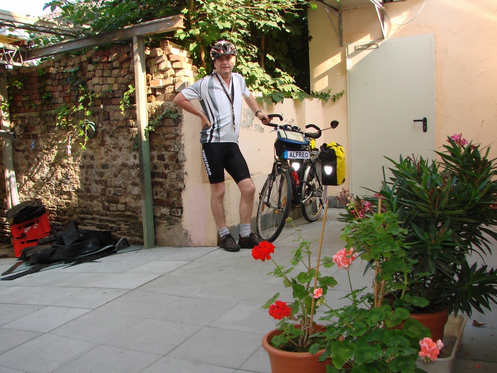 Am Ende der Tour konnte ich Andrea einen Scheck für ihr Krefelder Hospiz in Höhe von 1040 Euro überreichen, aber es werden sicher noch eineige Euros mehr, denn ich konnte noch viele Überweisungsvordrucke verteilen.