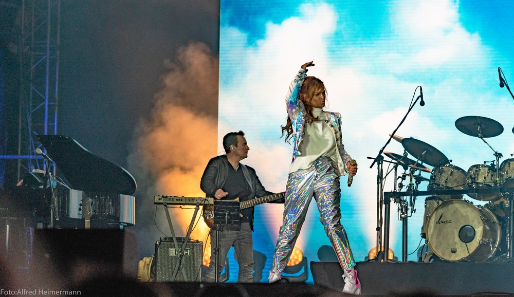 Andrea Berg Schladming/Steiermark Schladming Planai 23.3.2019 5000 Ski-u. Schlagerfreunde feierten im Partyzentrum von Schladming, im Planai Stadion Andrea Berg mit ihrer Band. Vorher heizte die Rebel Tell Band die Stimmung an. Vor dem Konzert bekam Andrea von der Bürgermeisterin von Schladming Planai Ski und einen Blumenstrauß geschenkt. |