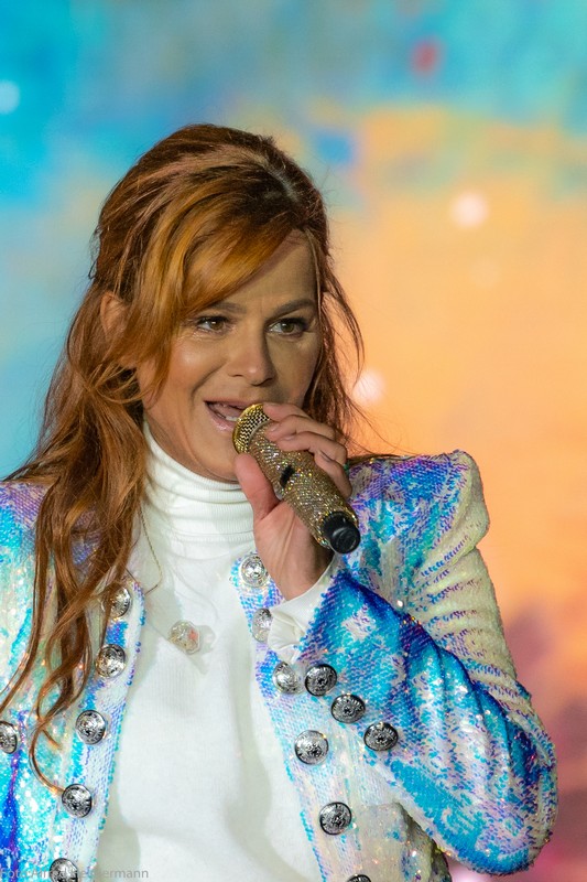 Andrea Berg Schladming/Steiermark Schladming Planai 23.3.2019 5000 Ski-u. Schlagerfreunde feierten im Partyzentrum von Schladming, im Planai Stadion Andrea Berg mit ihrer Band. Vorher heizte die Rebel Tell Band die Stimmung an. Vor dem Konzert bekam Andrea von der Bürgermeisterin von Schladming Planai Ski und einen Blumenstrauß geschenkt. |