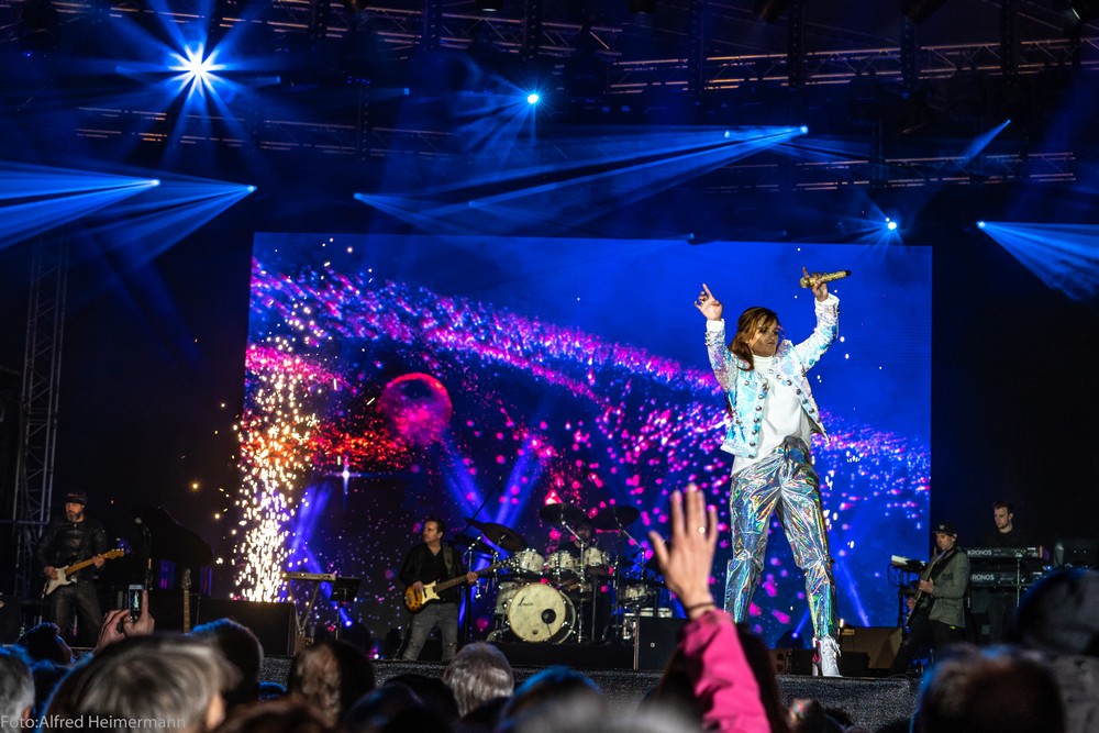 Andrea Berg Schladming/Steiermark Schladming Planai 23.3.2019 5000 Ski-u. Schlagerfreunde feierten im Partyzentrum von Schladming, im Planai Stadion Andrea Berg mit ihrer Band. Vorher heizte die Rebel Tell Band die Stimmung an. Vor dem Konzert bekam Andrea von der Bürgermeisterin von Schladming Planai Ski und einen Blumenstrauß geschenkt. |