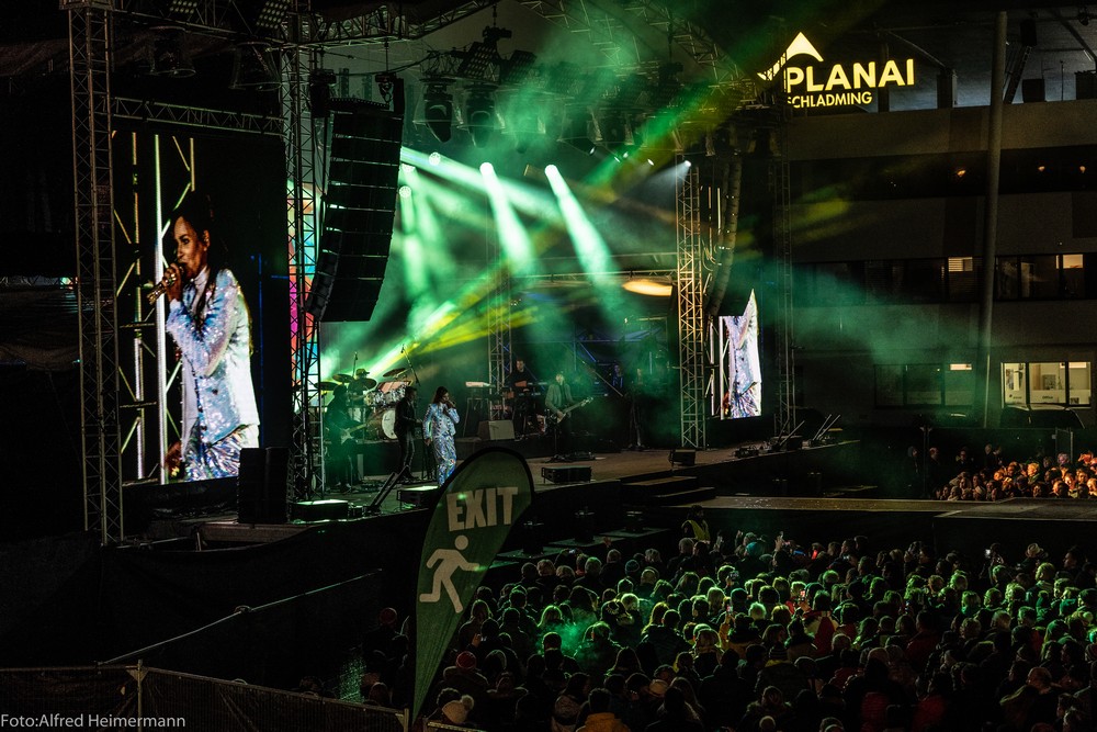Andrea Berg Schladming/Steiermark Schladming Planai 23.3.2019 5000 Ski-u. Schlagerfreunde feierten im Partyzentrum von Schladming, im Planai Stadion Andrea Berg mit ihrer Band. Vorher heizte die Rebel Tell Band die Stimmung an. Vor dem Konzert bekam Andrea von der Bürgermeisterin von Schladming Planai Ski und einen Blumenstrauß geschenkt. |