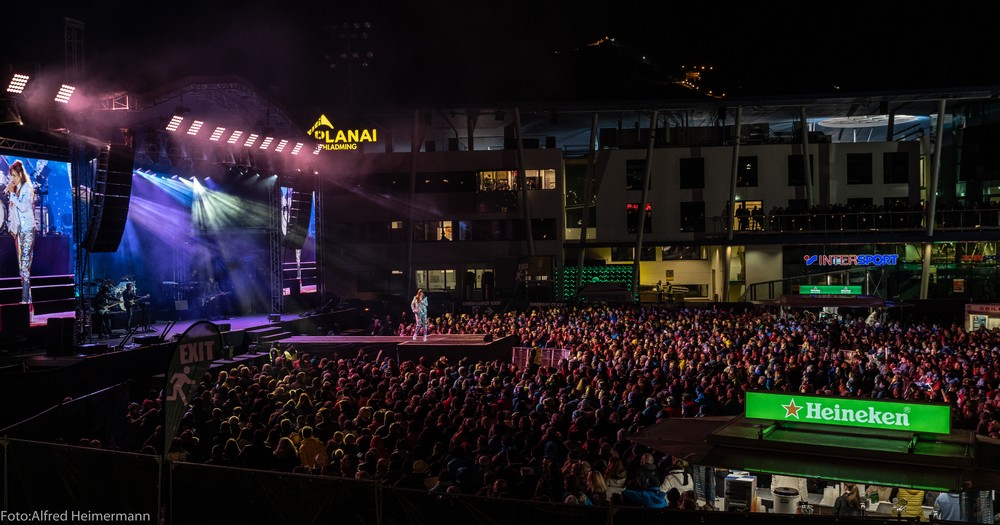 Andrea Berg Schladming/Steiermark Schladming Planai 23.3.2019 5000 Ski-u. Schlagerfreunde feierten im Partyzentrum von Schladming, im Planai Stadion Andrea Berg mit ihrer Band. Vorher heizte die Rebel Tell Band die Stimmung an. Vor dem Konzert bekam Andrea von der Bürgermeisterin von Schladming Planai Ski und einen Blumenstrauß geschenkt. |