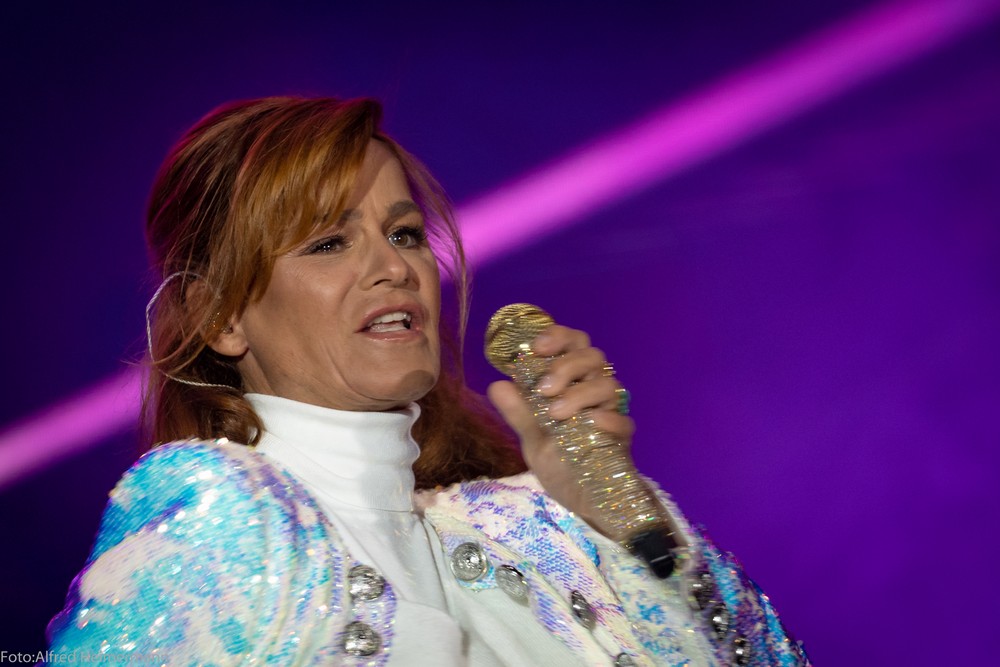 Andrea Berg Schladming/Steiermark Schladming Planai 23.3.2019 5000 Ski-u. Schlagerfreunde feierten im Partyzentrum von Schladming, im Planai Stadion Andrea Berg mit ihrer Band. Vorher heizte die Rebel Tell Band die Stimmung an. Vor dem Konzert bekam Andrea von der Bürgermeisterin von Schladming Planai Ski und einen Blumenstrauß geschenkt. |