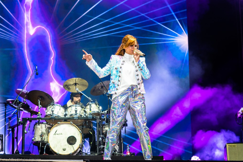 Andrea Berg Schladming/Steiermark Schladming Planai 23.3.2019 5000 Ski-u. Schlagerfreunde feierten im Partyzentrum von Schladming, im Planai Stadion Andrea Berg mit ihrer Band. Vorher heizte die Rebel Tell Band die Stimmung an. Vor dem Konzert bekam Andrea von der Bürgermeisterin von Schladming Planai Ski und einen Blumenstrauß geschenkt. |