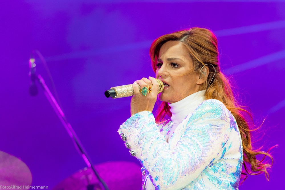 Andrea Berg Schladming/Steiermark Schladming Planai 23.3.2019 5000 Ski-u. Schlagerfreunde feierten im Partyzentrum von Schladming, im Planai Stadion Andrea Berg mit ihrer Band. Vorher heizte die Rebel Tell Band die Stimmung an. Vor dem Konzert bekam Andrea von der Bürgermeisterin von Schladming Planai Ski und einen Blumenstrauß geschenkt. |