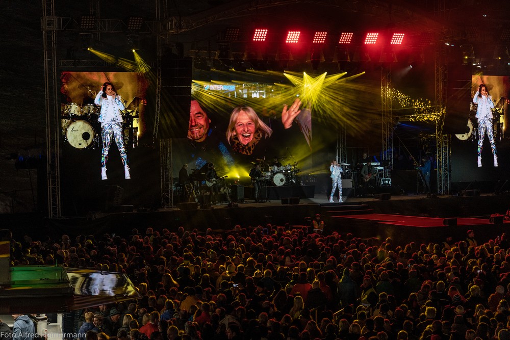 Andrea Berg Schladming/Steiermark Schladming Planai 23.3.2019 5000 Ski-u. Schlagerfreunde feierten im Partyzentrum von Schladming, im Planai Stadion Andrea Berg mit ihrer Band. Vorher heizte die Rebel Tell Band die Stimmung an. Vor dem Konzert bekam Andrea von der Bürgermeisterin von Schladming Planai Ski und einen Blumenstrauß geschenkt. |