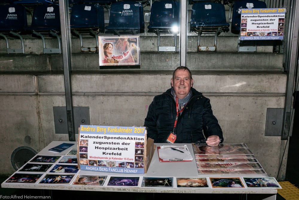 Andrea Berg Tour 2016, Nürnberg Versicherungsarena Nürnberg 8000 Musikfans von Andrea Berg waren in die ausverkaufte Halle in Nürnberg gekommen. Die Stimmung war gut, Andrea holte sich diesmal einen Mitsänger aus dem Publikum, der schon seit 1992 Fan von ihr ist, welch ein Glücksgriff. Leider konnte Andrea kein Fotoshooting mit den Fans abhalten, da eine Verletzung es nicht zulies, es wurden aber Autogrammkarten verteilt. |