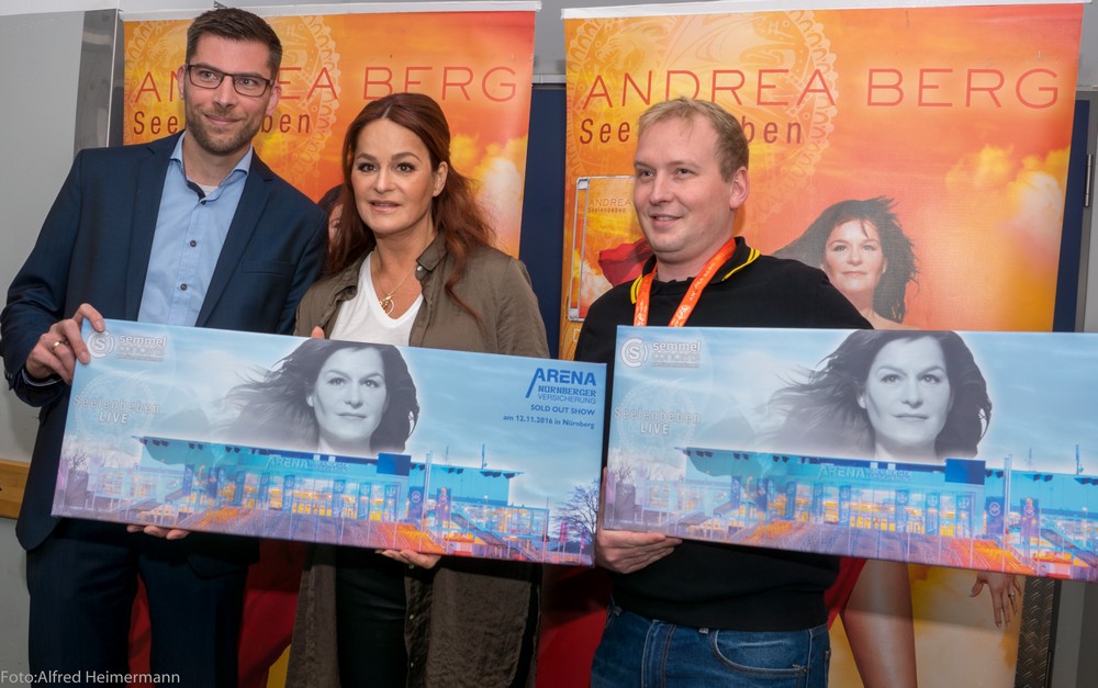Andrea Berg Tour 2016, Nürnberg Versicherungsarena Nürnberg 8000 Musikfans von Andrea Berg waren in die ausverkaufte Halle in Nürnberg gekommen. Die Stimmung war gut, Andrea holte sich diesmal einen Mitsänger aus dem Publikum, der schon seit 1992 Fan von ihr ist, welch ein Glücksgriff. Leider konnte Andrea kein Fotoshooting mit den Fans abhalten, da eine Verletzung es nicht zulies, es wurden aber Autogrammkarten verteilt. |