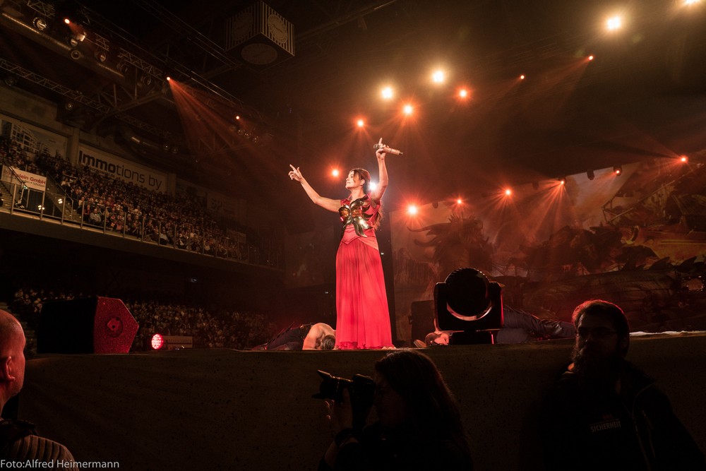 Andrea Berg Tour 2016, Nürnberg Versicherungsarena Nürnberg 8000 Musikfans von Andrea Berg waren in die ausverkaufte Halle in Nürnberg gekommen. Die Stimmung war gut, Andrea holte sich diesmal einen Mitsänger aus dem Publikum, der schon seit 1992 Fan von ihr ist, welch ein Glücksgriff. Leider konnte Andrea kein Fotoshooting mit den Fans abhalten, da eine Verletzung es nicht zulies, es wurden aber Autogrammkarten verteilt. |
