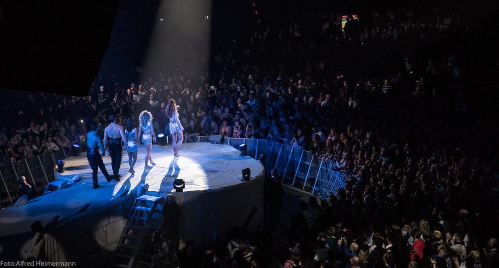Andrea Berg Tour 2016, Nürnberg Versicherungsarena Nürnberg 8000 Musikfans von Andrea Berg waren in die ausverkaufte Halle in Nürnberg gekommen. Die Stimmung war gut, Andrea holte sich diesmal einen Mitsänger aus dem Publikum, der schon seit 1992 Fan von ihr ist, welch ein Glücksgriff. Leider konnte Andrea kein Fotoshooting mit den Fans abhalten, da eine Verletzung es nicht zulies, es wurden aber Autogrammkarten verteilt. |