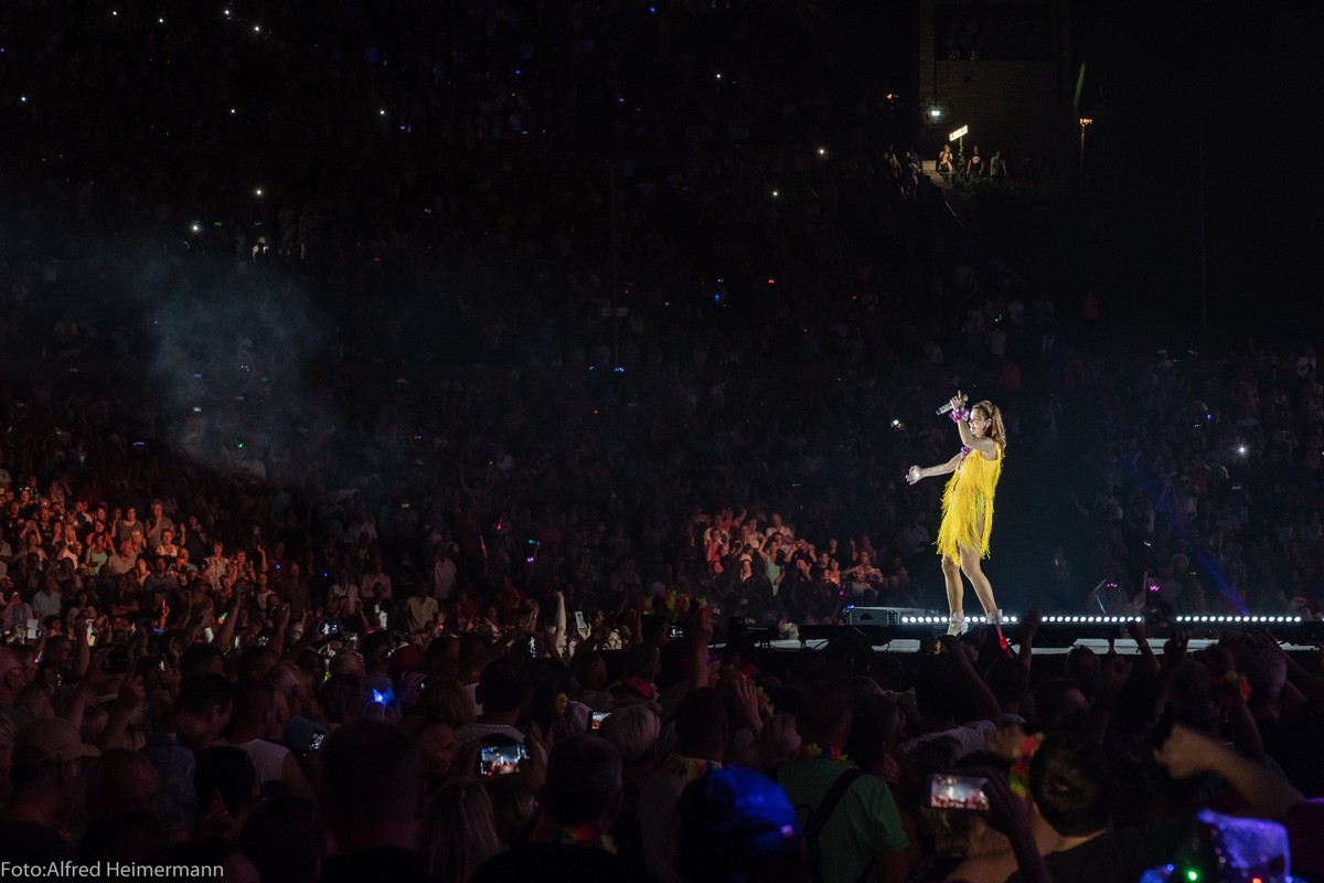 Immer ein besonderes Konzert in Berlin auf der Waldbühne von Andrea Berg. Fans aus ganz Deutschland und Österreich waren nach Berlin gepilgert um mit den 22000 Besuchern eine große Party bei bestem Sommerwetter zu feiern und alle waren begeistert. Zum Abschluss gab es noch ein Feuerwerk, was die Waldbühne erhellen ließ.