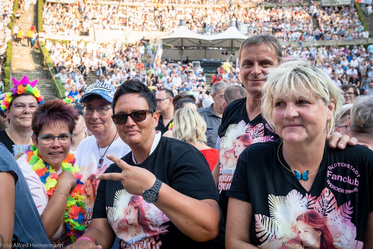 Immer ein besonderes Konzert in Berlin auf der Waldbühne von Andrea Berg. Fans aus ganz Deutschland und Österreich waren nach Berlin gepilgert um mit den 22000 Besuchern eine große Party bei bestem Sommerwetter zu feiern und alle waren begeistert. Zum Abschluss gab es noch ein Feuerwerk, was die Waldbühne erhellen ließ.