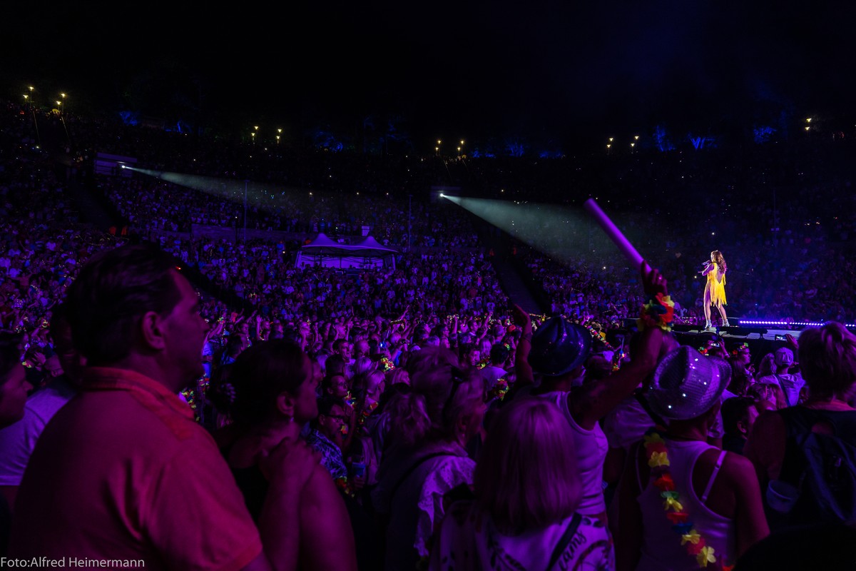 Immer ein besonderes Konzert in Berlin auf der Waldbühne von Andrea Berg. Fans aus ganz Deutschland und Österreich waren nach Berlin gepilgert um mit den 22000 Besuchern eine große Party bei bestem Sommerwetter zu feiern und alle waren begeistert. Zum Abschluss gab es noch ein Feuerwerk, was die Waldbühne erhellen ließ.
