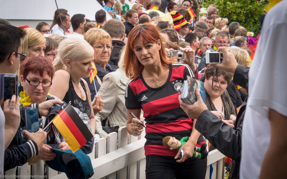 Am Tag des WM Endspiels zwischen Deutschland und Argentinien der Fernsehgarten unter dem Titel "FINALE". Die Höhner eröffneten die Finalparty, dann folgte mir 2 Liedern Andsrea, die im Shirt der DFB-Elf auftrat. Howie, NiKP und viele andere waren auch dabei.