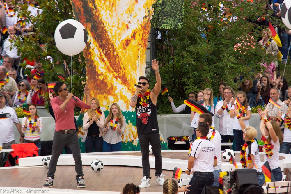 Am Tag des WM Endspiels zwischen Deutschland und Argentinien der Fernsehgarten unter dem Titel "FINALE". Die Höhner eröffneten die Finalparty, dann folgte mir 2 Liedern Andsrea, die im Shirt der DFB-Elf auftrat. Howie, NiKP und viele andere waren auch dabei.