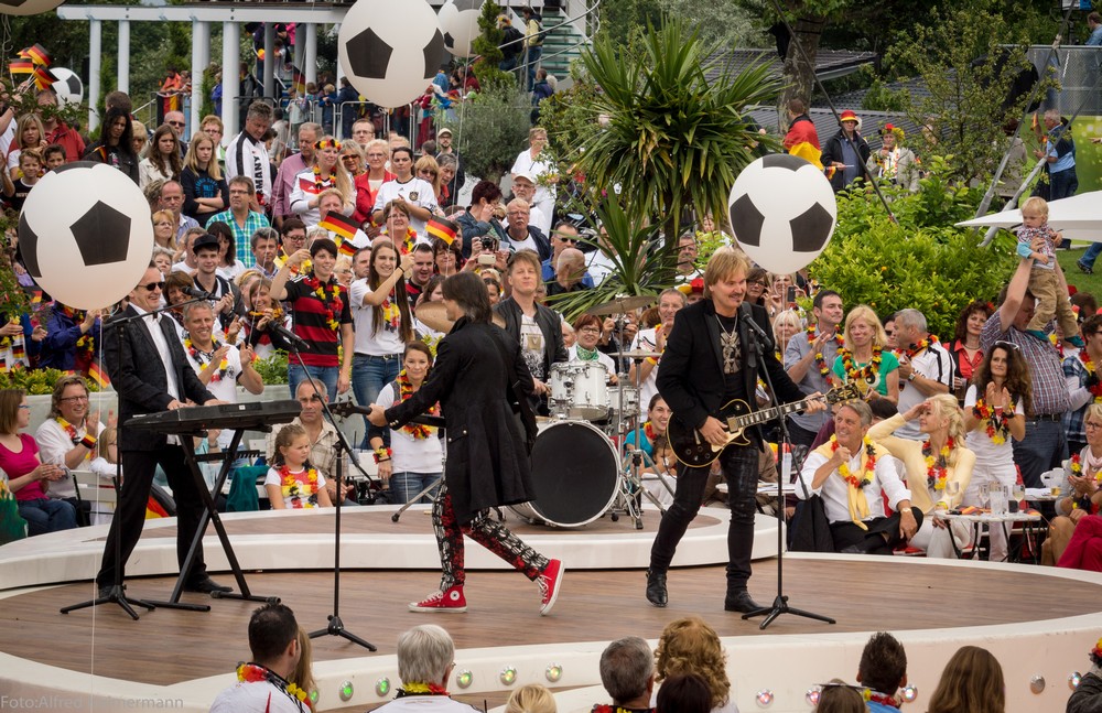 Am Tag des WM Endspiels zwischen Deutschland und Argentinien der Fernsehgarten unter dem Titel "FINALE". Die Höhner eröffneten die Finalparty, dann folgte mir 2 Liedern Andsrea, die im Shirt der DFB-Elf auftrat. Howie, NiKP und viele andere waren auch dabei.