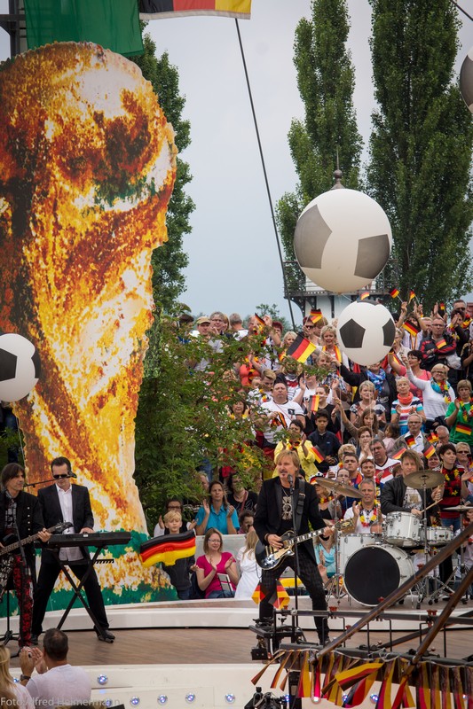 Am Tag des WM Endspiels zwischen Deutschland und Argentinien der Fernsehgarten unter dem Titel "FINALE". Die Höhner eröffneten die Finalparty, dann folgte mir 2 Liedern Andsrea, die im Shirt der DFB-Elf auftrat. Howie, NiKP und viele andere waren auch dabei.
